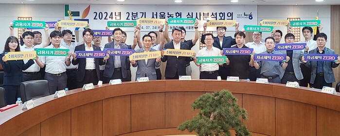 ▲농협중앙회 서울본부(본부장 김상수, 1열 왼쪽 6번째)는 24일 서울본부 회의실에서‘금융소비자보호 실천 결의대회’를 개최했다. 서울농협 제공 |
