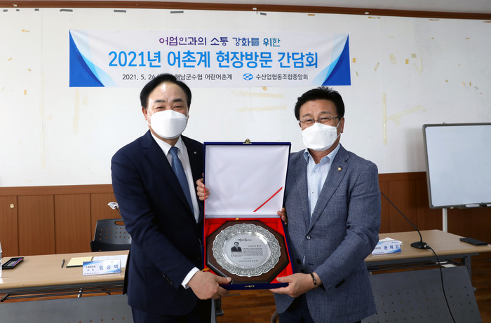 이 자리에서 임 회장은 윤재갑 의원에게 감사패를 전달하고 “어업인과 수산업을 위해 국회에서 의정활동에 힘써주시는 것에 대해 고맙다”며 사의를 표시했다.