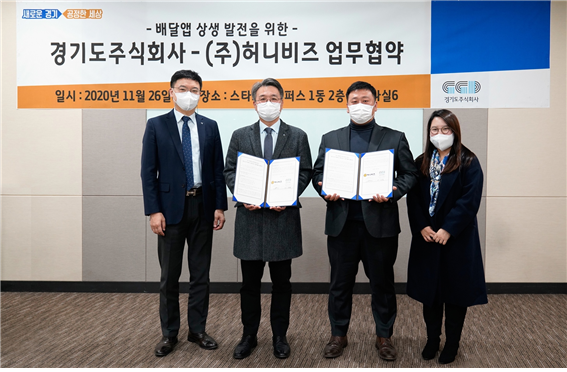 경기도주식회사는 26일 ㈜허니비즈와 ‘공공 배달앱 상생 발전을 위한 업무협약’을 체결했다고 밝혔다.