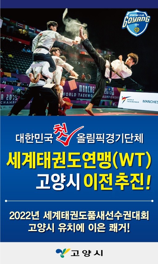 [로컬세계 강영한 기자]경기 고양시가 대한민국 첫 올림픽 경기단체인 세계태권도연맹(WT, World Taekwondo)의 본부 이전을 본격 추진한다.
