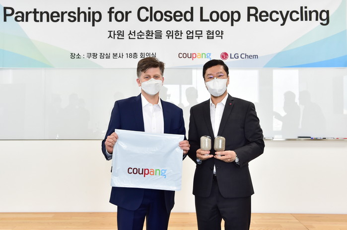 쿠팡과 LG화학이 플라스틱 폐기물 재활용을 위한 공동 프로그램을 시범 운영하는 내용의 양해각서(MOU)를 체결했다고 9일 발표했다. 쿠팡은 이 MOU 체결을 통해 고객과 물류센터로부터 수거된 플라스틱 폐기물을 LG화학에 전달하고, LG화학은 회수된 폐기물을 재생 원료로 재생산한다.