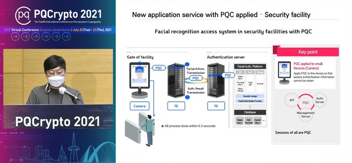 | ▲20~22일 열린 ‘2021 국제 양자내성암호 학술대회(PQCrypto 2021)’에서 LG유플러스 관계자가 양자내성암호를 산업분야 인프라·서비스에 적용한 사례를 발표하고 있다. [LG유플러스 제공] |