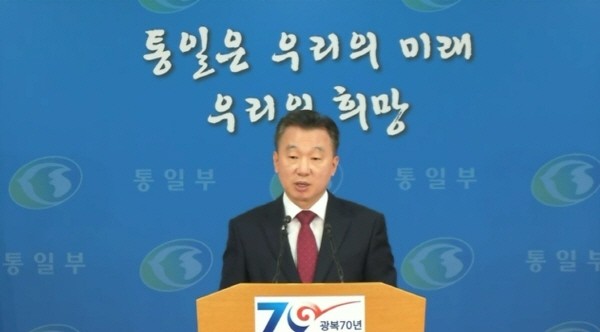 ▲ 통일부 정준희 대변인이 오늘(26일) 오전 정례브리핑을 하고 있다.<사진출처=e-브리핑 화면캡처> |