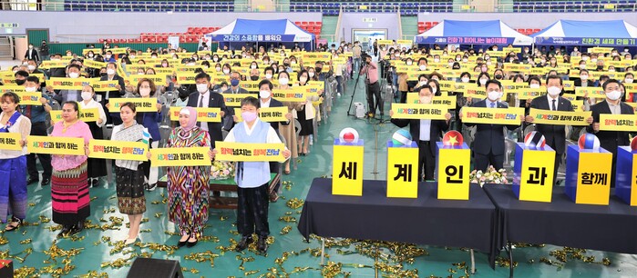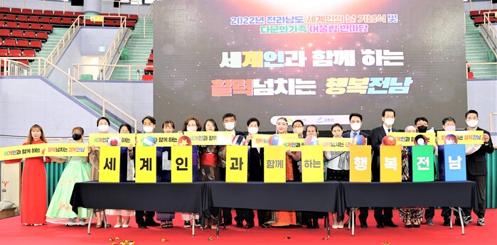 [로컬세계 = 한세혁 기자] 전남도는 7일 고흥팔영체육관에서 외국인 주민과 지역주민 간 소통과 화합을 위한 ‘2022년 제15회 세계인의 날 기념식 및 다문화가족 어울림 한마당 행사’를 개최했다.