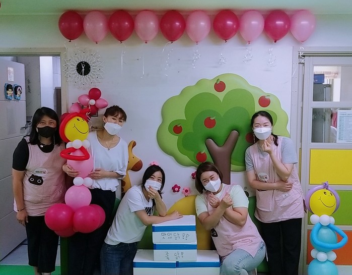 | ▲광주전남혁신 부영 2단지 사랑으로 부영 어린이집 교사들이 부영그룹에서 말복 선물로 받은 삼계탕을 들고 있다. [부영그룹 제공] |
