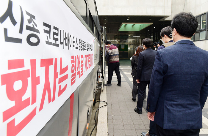 | ▲헌혈하기 위해 줄을 선 공직자들. |