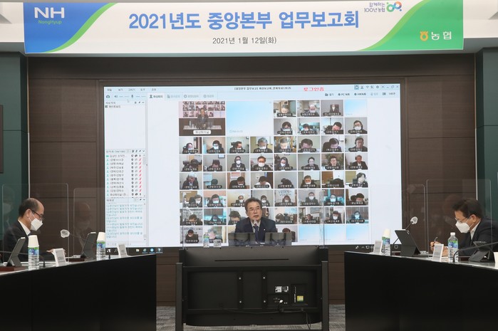 농협중앙회(회장 이성희)는 12일 오후 서울 중구 농협중앙회 본관 화상회의실에서 ‘2021년도 신년 업무보고회’를 개최했다.