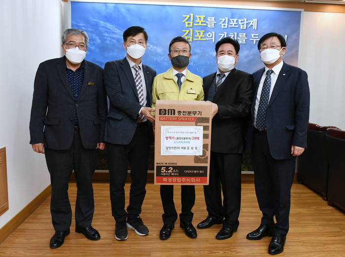 방역기는 김포시 전역에 대한 빈틈없는 소독을 실시하기 위해 방역활동을 하는 관계자들에게 전달해 코로나19의 확산 방지에 사용될 예정이다.