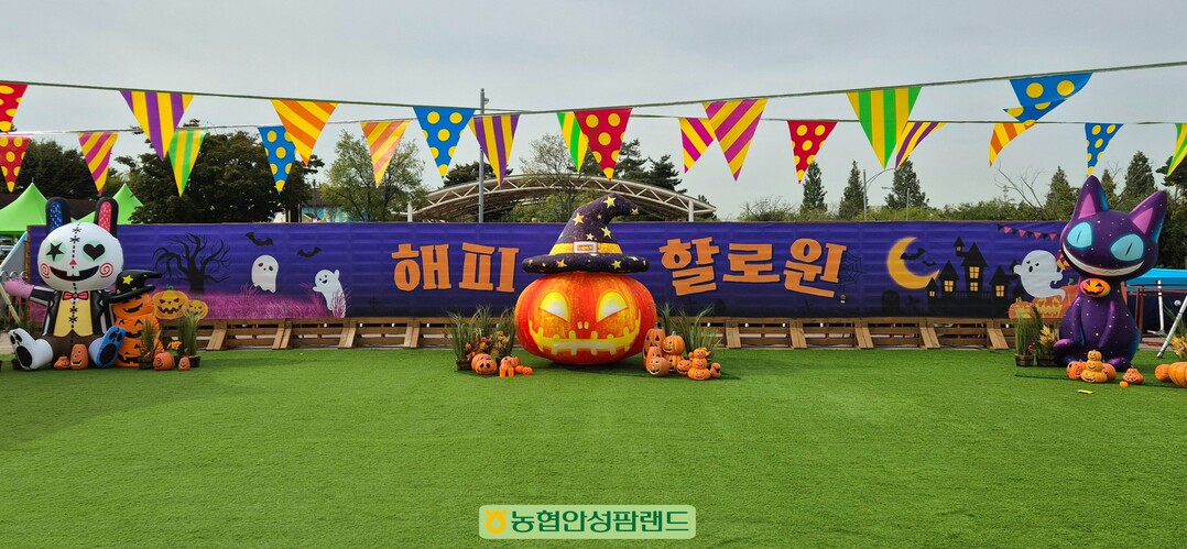 안성팜랜드 중앙광장에 잭오랜턴 등 할로윈 조형물이 설치되어 있다. 농협 제공