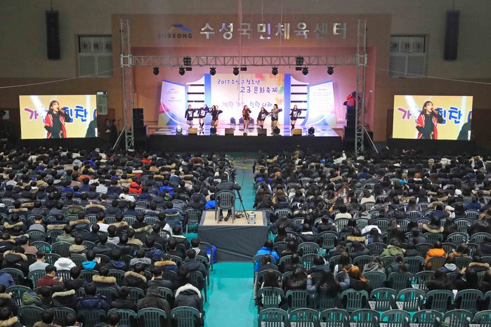 이진훈 구청장은 “수능이 일주일 연기돼 고3 수험생들이 많이 혼란스럽고 당황했을 것이다. 하지만 위기를 기회로 만들어 무사히 시험을 잘 치렀을 것”이라고 생각되며 “이번 고3문화축제 행사를 통해 그동안의 스트레스를 해소하고 앞으로 펼쳐질 새로운 미래에 대한 설렘과 기쁨을 마음껏 누리길 바란다”고 말했다.