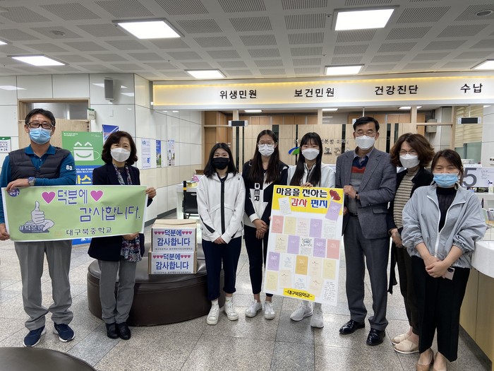 대구북중학교 교직원과 학생들은 “코로나19가 하루빨리 끝나기를 바라는 마음으로 쓴 손편지와 학생들이 텃밭에서 정성스럽게 키운 고구마로 감사의 마음이 조금이나마 전달됐으면 좋겠다”고 말해 보건소 직원들의 마음을 훈훈하게 했다.