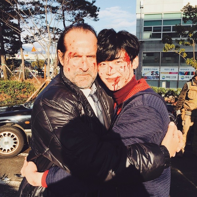사진 속 피터 스토메어는 진지한 표정으로 이종석을 안고 있고, 이종석은 밝은 표정으로 피터 스토메어를 안고 있어 눈길을 끌며, 얼굴에 핏자국이 보여 어떤 장면이 영화 속에서 펼쳐질지 궁금증이 증폭되고 있다.