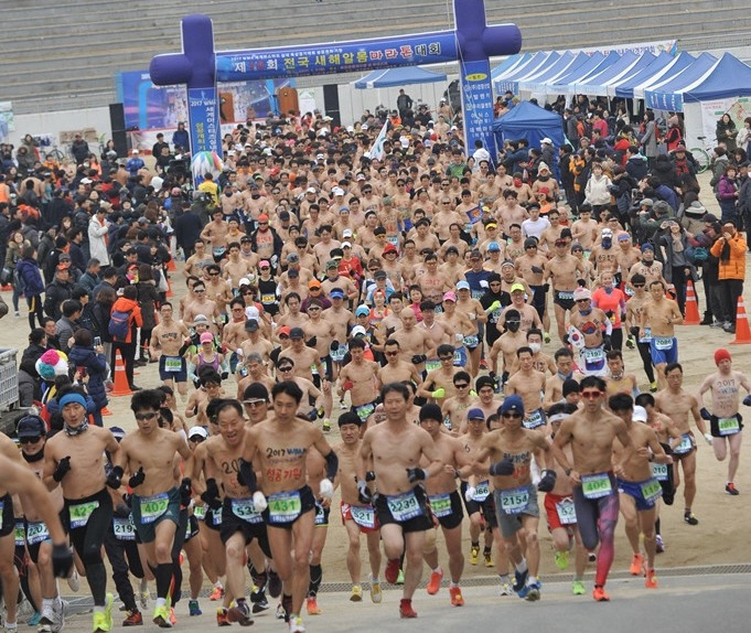 매년 첫 번째 일요일에 개최되는 전국새해알몸라톤대회는 2008년에 창설돼 회를 거듭할수록 참가하는 동호인들이 늘어나면서 좋은 반응을 얻고 있다. 대회는 5km,10km코스를 청년부, 장년부로 구분해 진행하고 여자는 자유복장, 남자는 반드시 상의를 벗고 참가해야 한다.