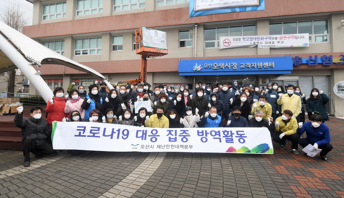 이날 궂은 날씨에도 공무원, 오산시자율방재단, 주민자치위원회, 새마을지도자 협의회, 51사단 군장병 등 100여명은 합동으로 오색시장과 일원 공중화장실을 집중 방역했다.