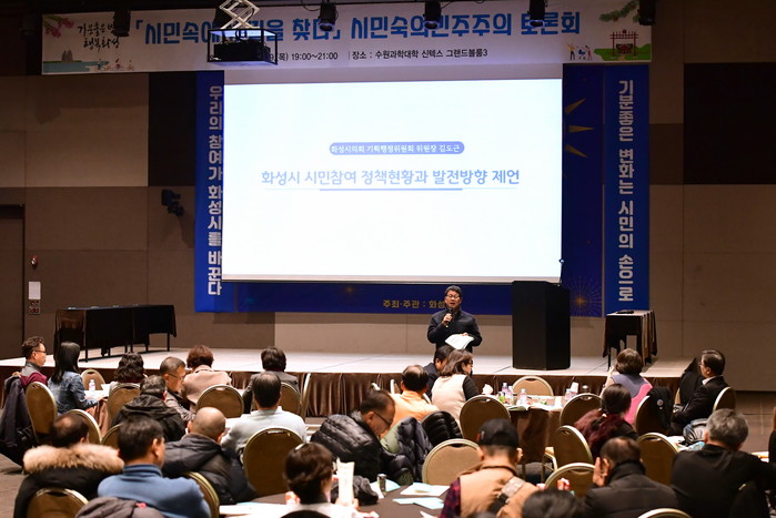 토론회는 유문종 경기 지속가능발전협의회 운영위원장이 좌장을 맡아 주재했으며, 김도근 화성시의회 기획행정위원장, 최종인 지역회의위원, 이용근 마을만들기 화성시민네트워크 운영위원장이 패널로 참여해 시민민주주의에 대한 열띤 논의를 펼쳤다.