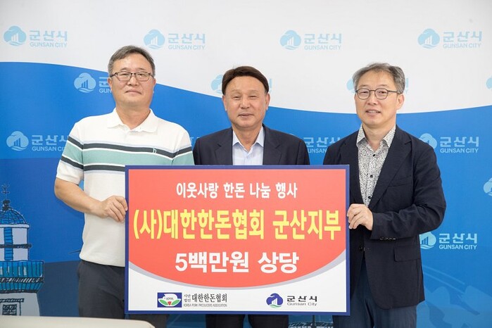 [로컬세계 = 양해수 기자]전북 군산시는 14일 (사)대한한돈협회 군산지부(지부장 김현섭)가 추석 명절을 맞아 사회복지시설·단체 등 어려운 이웃에게 전해 달라며 500만원 상당의 한돈을 기탁 했다고 밝혔다.
