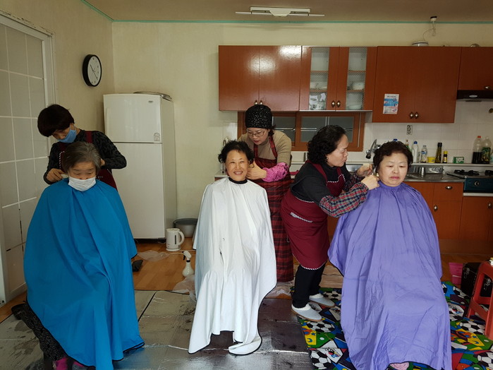 영천리 경로당은 김천시와 경계에 위치해 평소 어르신들이 교통불편과 비용부담으로 미용을 잘 못했다.