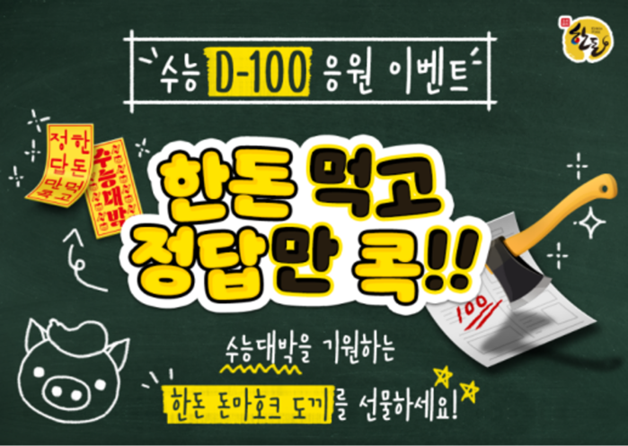 | ▲8월 2일부터 8일까지 진행되는 ‘수능 D-100응원 이벤트’ 이미지 [한돈자조금 제공] |