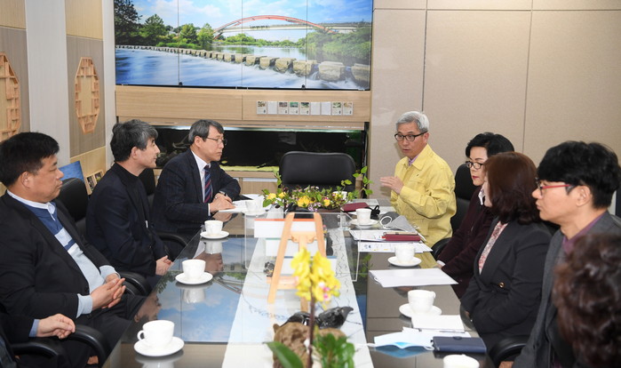 | ▲따숨마스크 나눔 지원관련 학교장 회의 모습.(오산시 제공) |