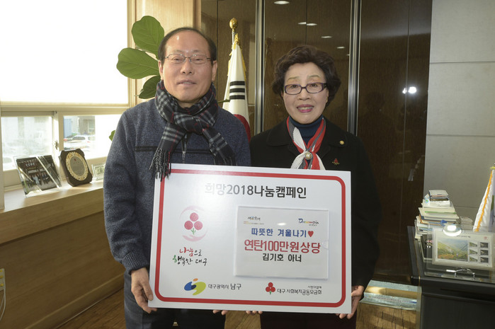 대구에 거주하는 김기호씨는 1억원 이상 고액기부자 모임인 ‘아너소사이어티’에 가입한 데 이어, 자신의 전 재산인 아파트를 유산 기부하기로 한 바 있다.