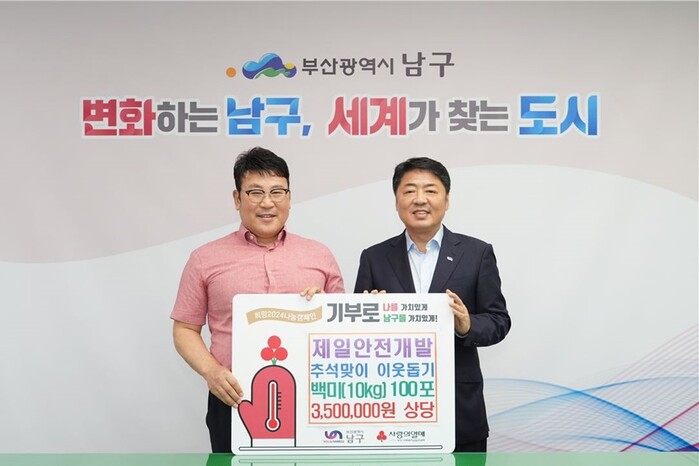 [로컬세계 부산=맹화찬 기자]부산 남구는 지난 10일 제일안전개발에서 구에 350만원 상당의 백미(10kg) 100포를 전달했다고 11일 밝혔다.