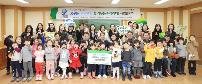 '꿈꾸는 아이리더! 꿈 키우는 수성리더'는 소액기부를 통해 모금한 성금으로 학업, 예·체능 등 각 분야에 재능이 있으나 경제적 어려움을 겪고 있는 저소득층 학생이 사회적 리더로 성장할 수 있도록 후원하거나 멘토링 등을 통해 지원해 주는 사업이다.