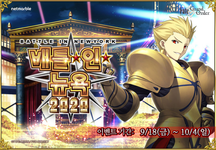 '배틀 인 뉴욕 2020'은 영웅왕 '길가메시'가 주최하는 화려한 대난투로, 서번트들과의 배틀을 통해 호화로운 보상과 퀘스트를 즐기는 이벤트다. 퀘스트를 완료하면 이벤트 전용 아이템이 제공되며, 이벤트 상품을 교환하거나 상품 추첨을 통해 성장에 필요한 강화 소재를 수월하게 획득할 수 있다.