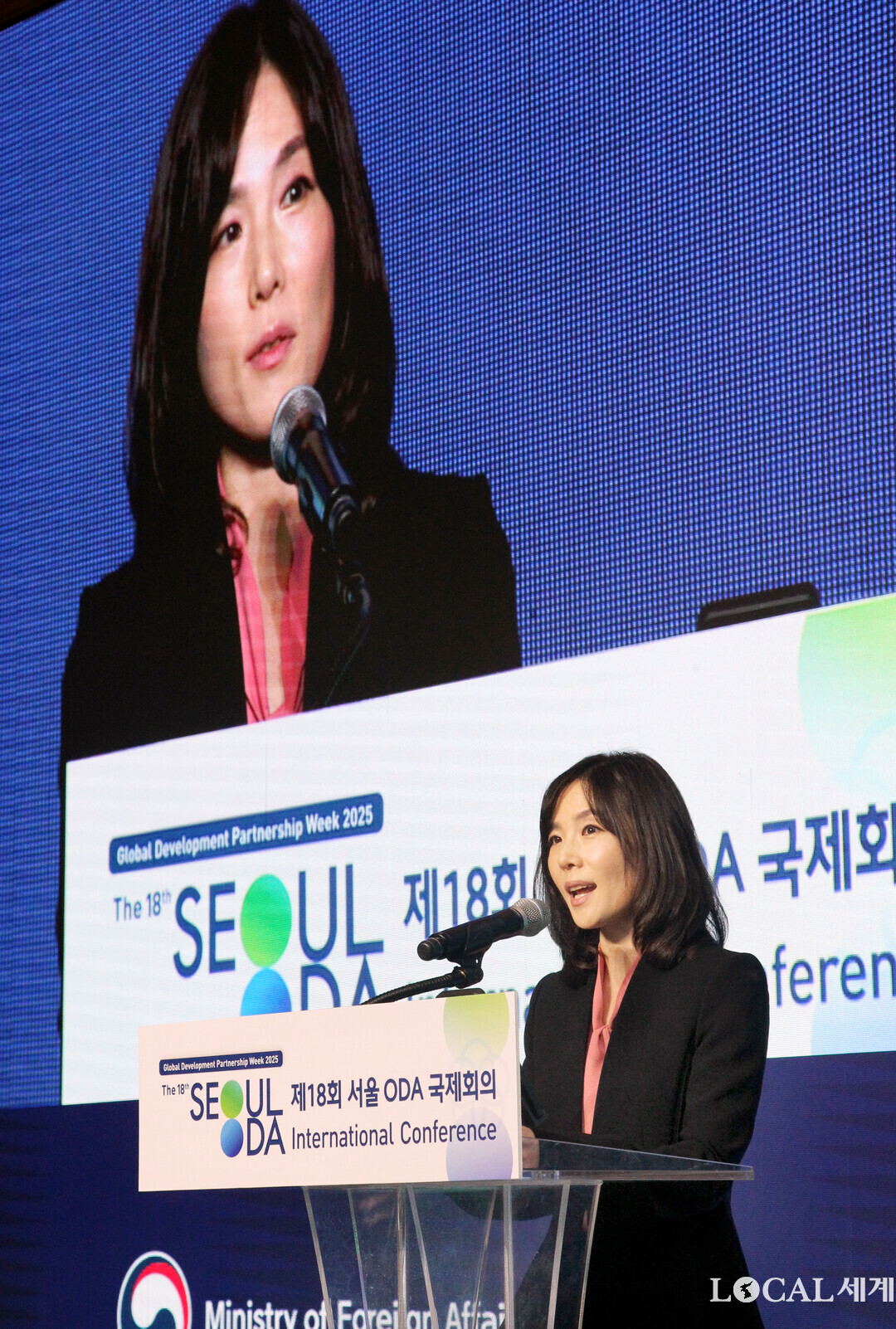 외교부와 코이카(KOICA‧한국국제협력단)가 29일 서울시 중구 소공동 롯데호텔에서 ‘개발재원 파트너십: 미래를 위한 논의’를 주제로 공동 주최한 ‘제18회 서울 ODA 국제회의’에서 김진아 외교부 제2차관이 환영사를 하고 있다.
