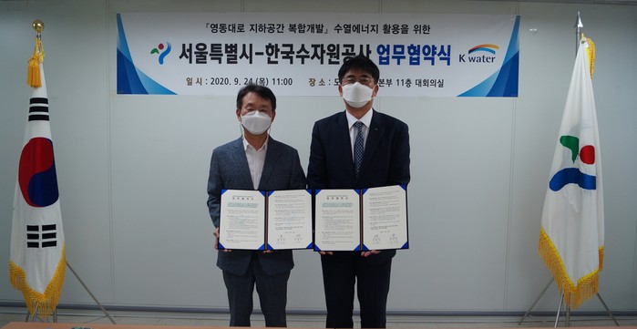 한국수자원공사(사장 박재현)는 서울시와 24일 오전, 서울특별시 중구 청계청사에서 ‘영동대로 복합환승센터 수열에너지 활용을 위한 업무협약’을 체결했다고 밝혔다.