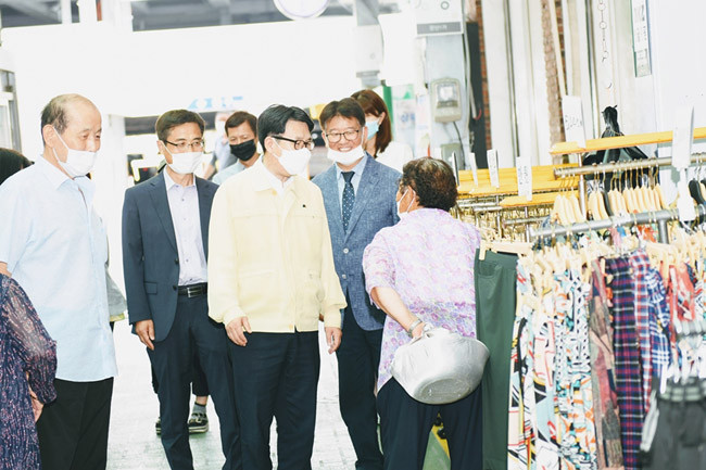마지막으로 최종환 시장은 7월 16일 문산자유시장과 지역 내 중소기업을 방문했다. 먼저 최 시장은 코로나19 여파로 어려움을 겪고 있는 전통시장 가운데 문산자유시장을 찾아 시장 현장을 직접 살피고 상인들의 애로사항을 청취했다.
