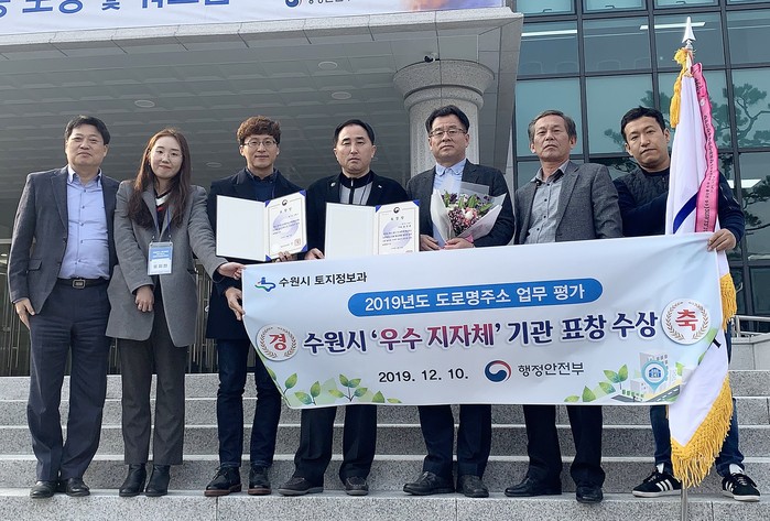 [로컬세계 고용주 기자]경기 수원시가 행정안전부 주관 ‘2019년 도로명주소 업무 유공 평가’에서 우수 지자체로 선정돼 행정안전부 장관 표창을 받았다. 시상식은 10일 전주교육대학에서 열렸다.