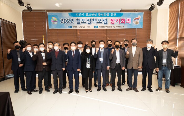 [로컬세계=양해수 기자]전북 익산시는 지난 18일 웨스턴라이프 호텔 에메랄드 홀에서 ‘2022년 익산시 철도정책 포럼 정기회의’를 개최했다고 밝혔다.