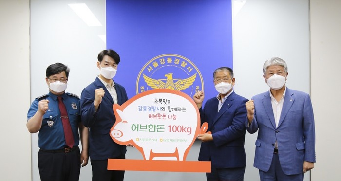 한편 서울농협은 서경양돈농협과 함께 지난 3월 3일 삼삼데이 때도 강동경찰서 의경대원들을 위해 허브한돈 100KG과 과일을 후원한 바 있으며, 지난 달 8일 호국보훈의 달을 맞이하여 보훈가정에 행복나눔상자 60박스를 전달하는 등 지역사회 곳곳에서 사회공헌 활동을 활발히 펼치고 있다.