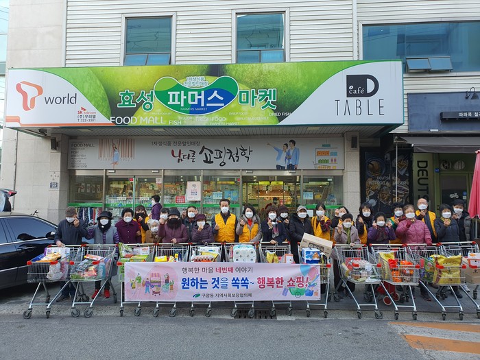 [로컬세계 박세환 기자]대구 북구 구암동 지역사회보장협의체는 8일 효성파머스마켓 칠곡점에서 지역사회보장협의체 위원들이 직접 추천한 저소득 가구 15명과 함께 관내 취약계층의 생필품 지원을 위한‘원하는 것을 쏙쏙 ~ 행복한 쇼핑’이라는 후원 프로그램을 진행했다고 밝혔다.
