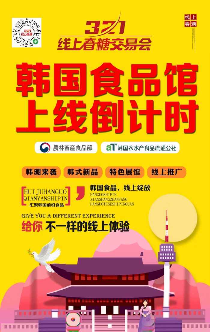 농림축산식품부(장관 김현수)와 한국농수산식품유통공사(aT, 사장 이병호)는 K-FOOD의 중국 내륙 유통시장 개척을 위해 온라인 벤더박람회에서 한국식품 전용관을 지난 11일 오픈했다고 13일 밝혔다.