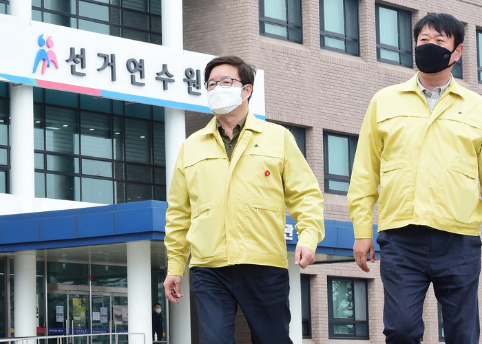 | ▲염태영 시장이 해외입국자 임시생활시설(선거관리위원회 선거연수원)을 점검하고 있다.(수원시 제공) |