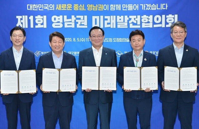 부산시는 대구시, 울산시, 경상북도, 경상남도와 함께 5일 경남도청 도정회의실에서 영남권의 공동발전을 위한 ‘제1회 영남권 미래발전협의회(이하 협의회)를 개최했다고 밝혔다.
