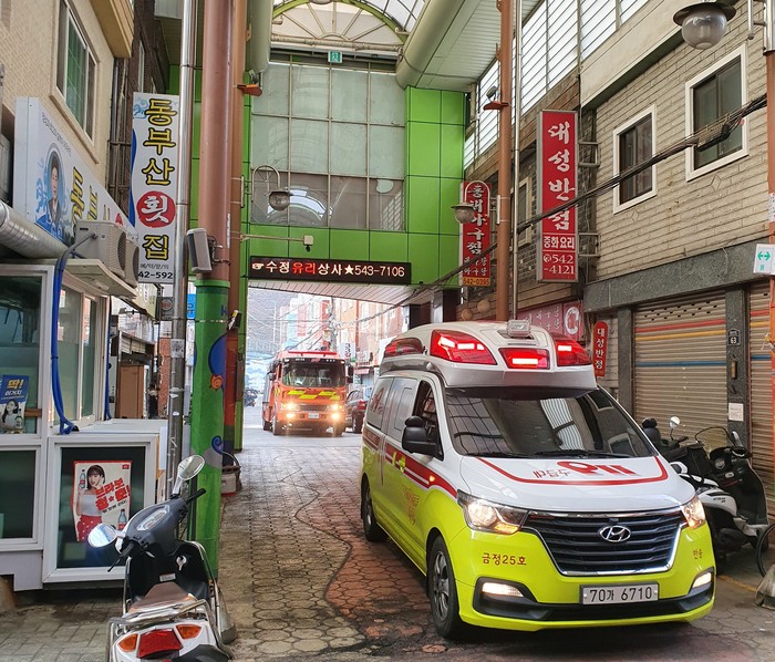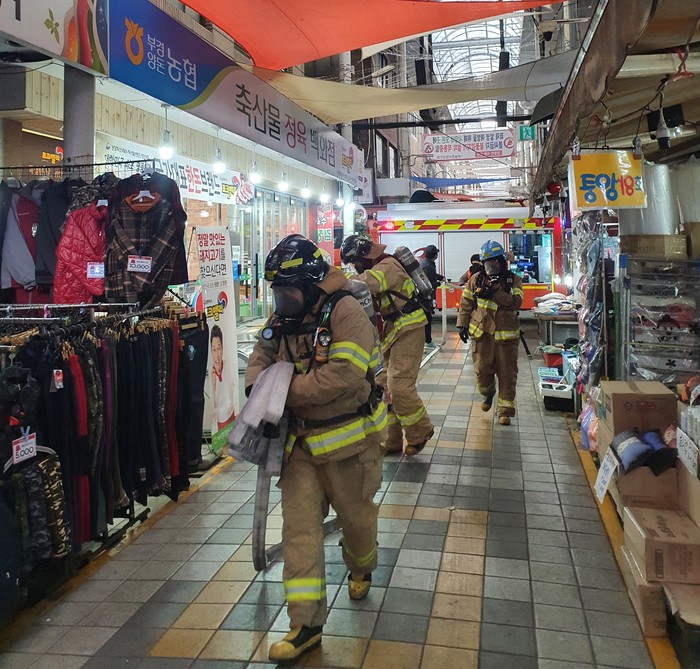 [로컬세계 맹화찬 기자]부산 금정소방서(서장 김우영)은 지난 23일 동절기 전통시장 화재발생에 대비한 소방차 길 터주기 훈련을 실시했고 밝혔다.