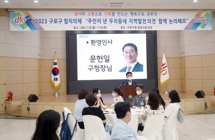 ▲ 2022년 열린 공론장에서 문헌일 구청장이 인사말을 하고 있다. 구로구 제공 |