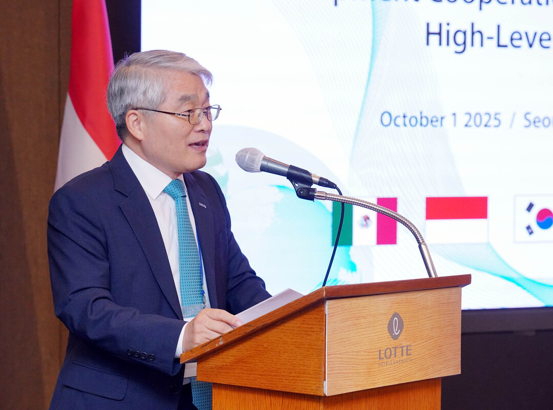 코이카가 주관해 1일 서울 중구 소공동 소재 롯데호텔 서울에서 열린 ‘제5차 믹타(MIKTA) 개발협력기관 협의회 고위급 회의’에서 홍석화 코이카 지역사업Ⅱ본부 이사가 모두 발언하고 있다. 코이카 제공