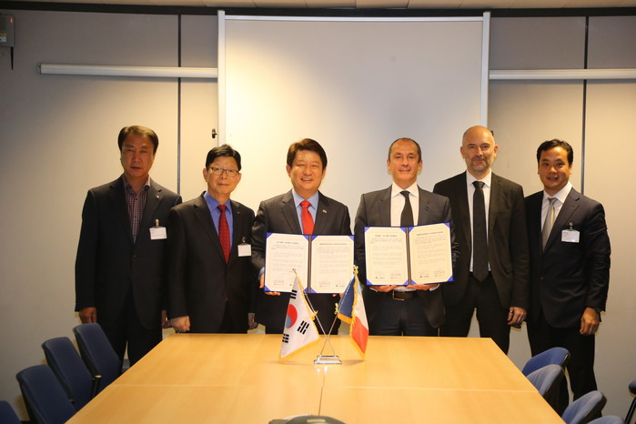 | ▲프랑스 현지시각 19일 르노자동차 본사에서 권영진 시장을 비롯한 대구시 유럽방문단과 르노자동차 관계자들이 업무협약을 맺고 있다. |