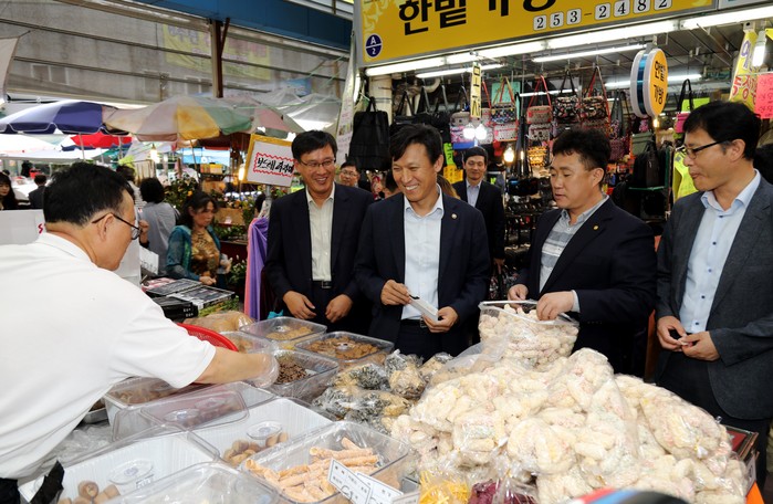 이날 김 청장은 온누리 상품권으로 과일, 떡 등 명절 성수품을 장을 보면서 시장 상인들의 애로사항을 함께 청취했다.