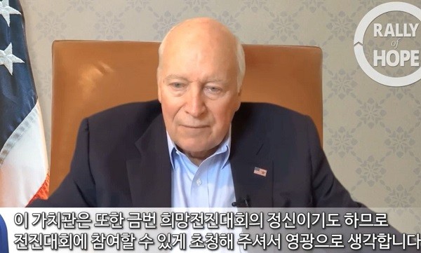 ▲딕 체니 전 미국 부통령이 27일 희망전진대회에서 기조연설을 하고 있다. 가정연합 제공 |