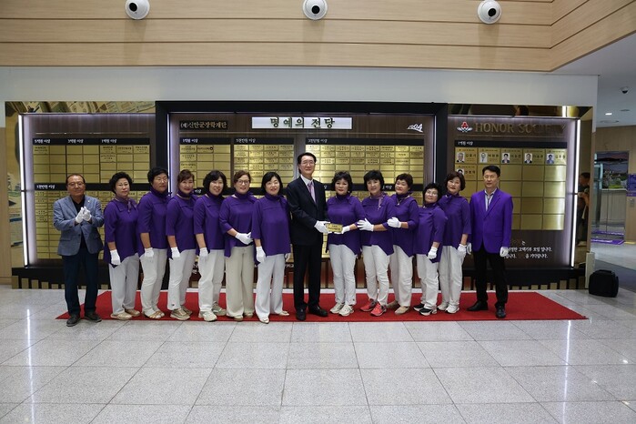 [로컬세계=박성 기자]전남 신안군 자은면여성단체협의회 회장 김복실 회원들이 지난 8일 지역 학생들을 위한 장학기금 500만원을 신안군장학재단 박우량 이사장에게 전달했다.