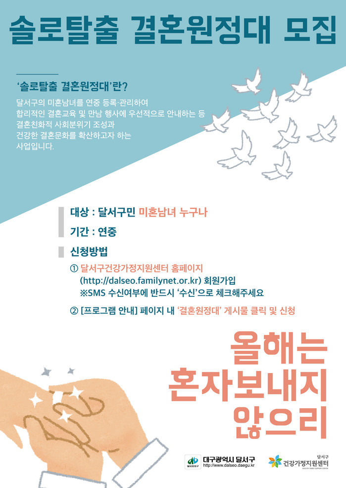 주소가 달서구인 미혼남녀는 누구나 참여 가능하다.