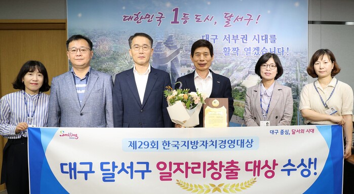 달서웨이(Dalseo-way) 일자리 프로젝트 추진으로 목표 대비 108.3%의 고용 실적을 달성하는 등 탁월한 성과를 인정받아 ‘제29회 한국지방자치경영대상’에서 수상기관으로 선정됐다.