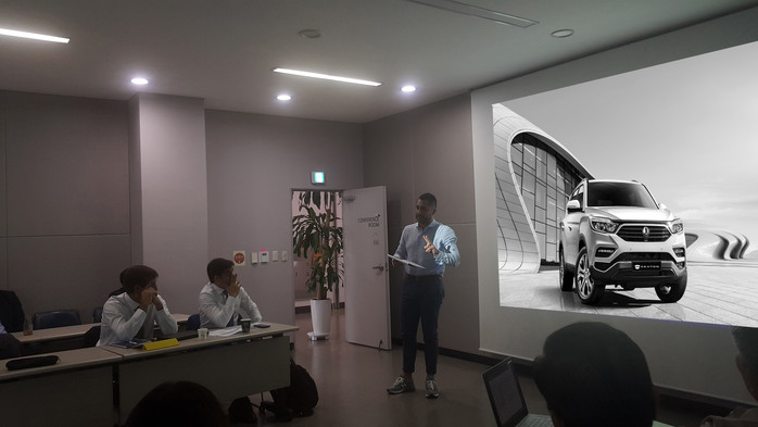 ▲쌍용차 글로벌 제품 마케팅 협의회가 현지 마케팅 방안에 대해 논의하고 있다. |