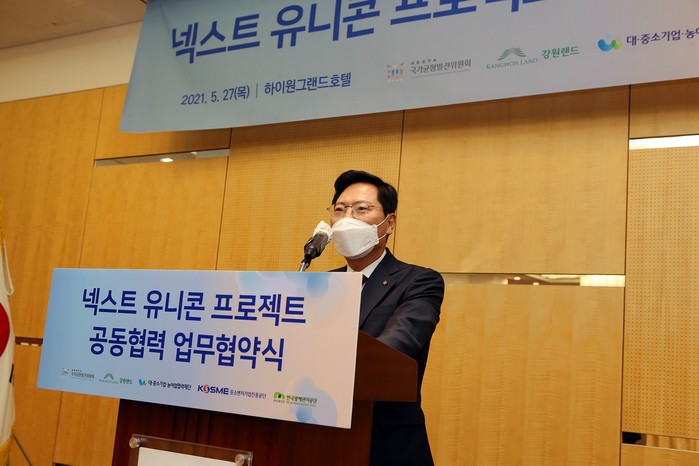 [로컬세계 박상진 기자]강원랜드는 27일 강원랜드 하이원 그랜드호텔에서 국가균형발전위원회, 대.중소기업.농어업협력재단, 중소벤처기업진흥공단, 한국광해관리공단 등 4개 기관과 함께 넥스트 유니콘 프로젝트의 발전 및 지속추진 동력을 확보하기 위한 공동협력 업무협약을 체결했다고 밝혔다.