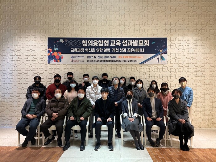 ▲ 2022 창의융합교육 성과발표회 참석자들이 기념사진을 촬영하고 있다. 한국해양대 제공 |