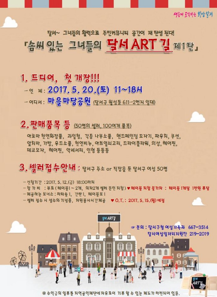 ‘솜씨 있는 그녀들의 달서 아트(ART)길’은 연중 장소를 옮겨, 5여 차례 추가 개장하고 참여 여성도 점차 늘려 나갈 계획이다.